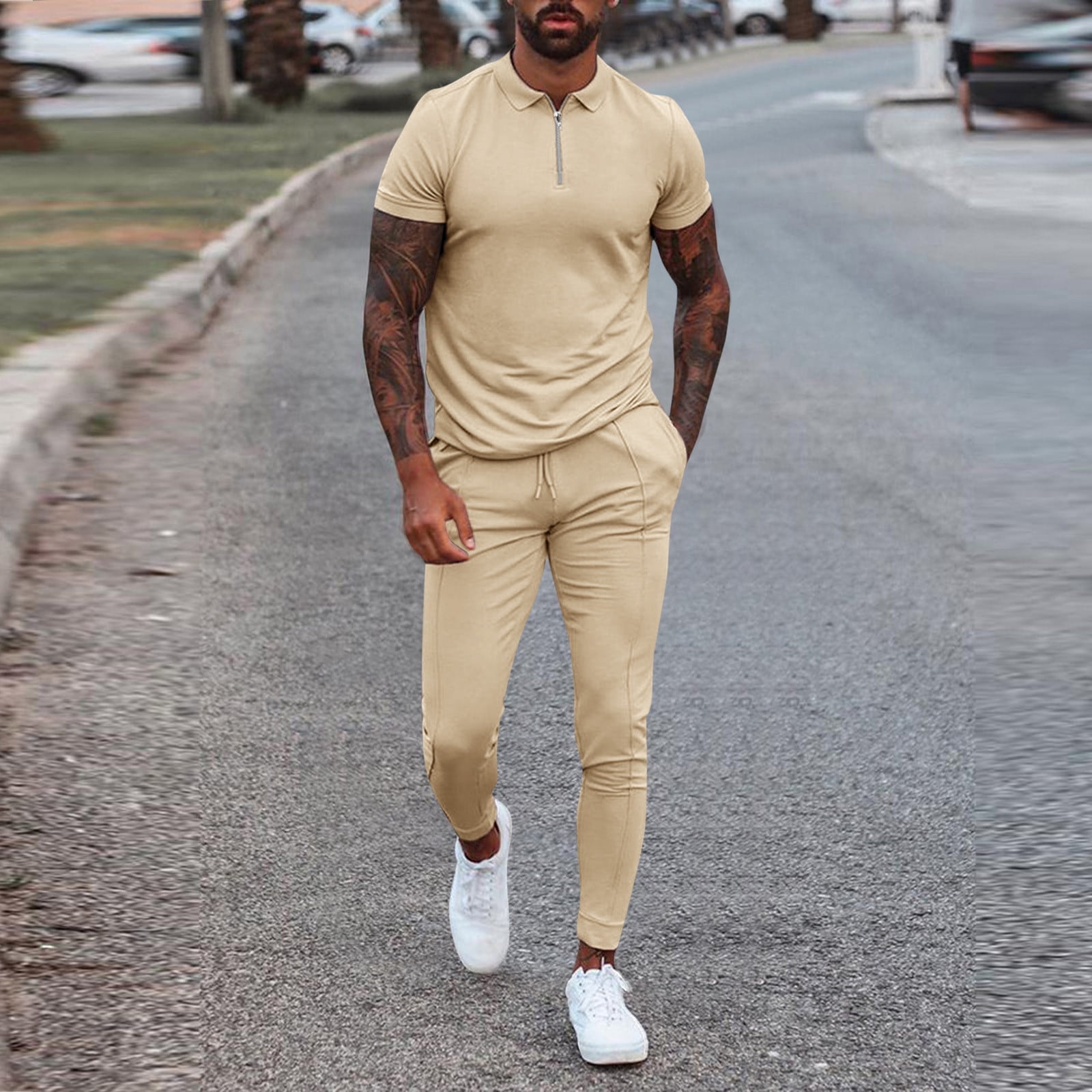 Blzjd Men S Fashion Casual Solid Color Zipper Short Sleeve Trousers Set Walmart Com
